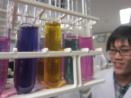 これは、片付けの風景です。カラフルな試験管の背景に微笑むM尾君の顔が・・・(^◇^)