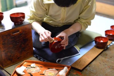 みんな興味津々です。わたしも漆器のお椀でいつかお味噌汁を飲みたいです。