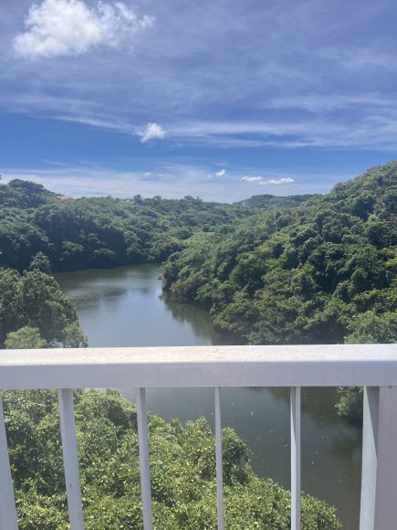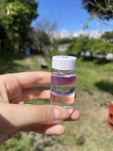 その後,琉球大学に移動して午後から池の水中ラドン濃度の測定をしました。