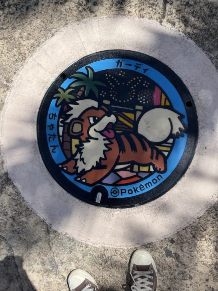 ↑①実習先で仲良くなった子と食べた郷土料理 ②偶然見かけたマンホール