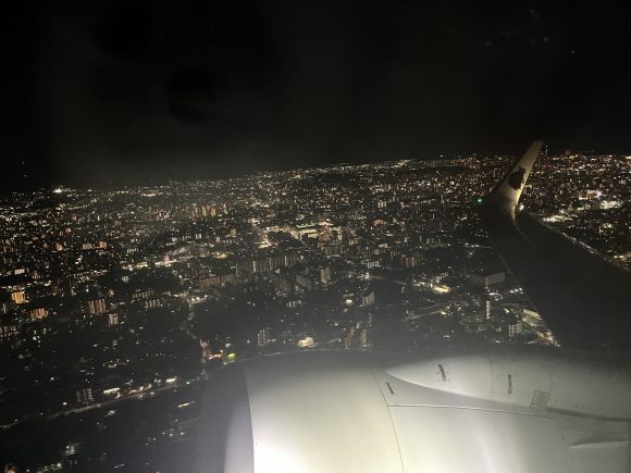↑飛行機から見えた福岡の夜景