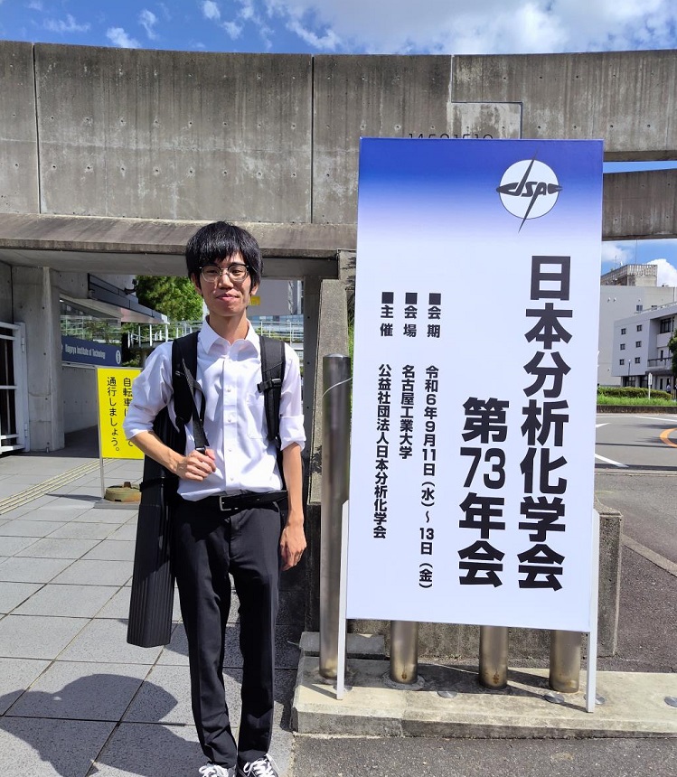 2024年9月11日-13に、名古屋大学で開催された「日本分析化学会第73年会」で学生2名が研究成果を発表しました。 タイトルは、以下のとおりです。 【ポスター発表】 ・岩本友樹、高貝慶隆、“金ナノ粒子包含樹脂を反応場と … 続きを読む