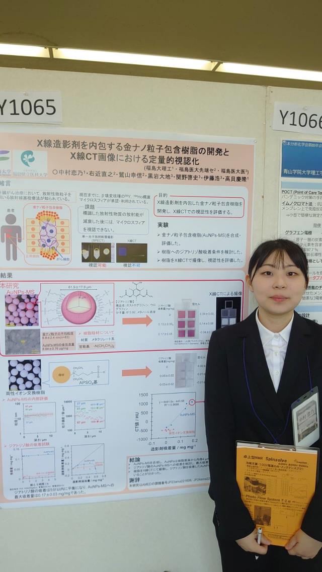 2025年5月31日-6月1日に愛媛大学で開催された第85回分析化学討論会に大学院生1名、教員1名が参加し、研究成果発表を行いました。 以下、研究成果発表のタイトルです。 ・中村恋乃,右近直之,鷲山幸信,黒岩大地,関野啓 … 続きを読む