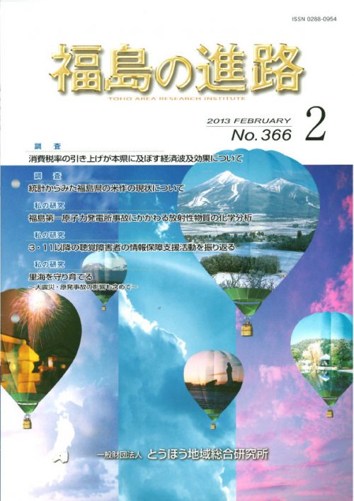一般財団法人とうほう地域総合研究所の機関誌「福島の進路」2013.2月号(No.366)に原発関連の活動内容の一端が掲載されました。配布用の冊子体のみでPDF版がありません。ご興味のある方は,画質が悪いですが下記のリンク … 続きを読む