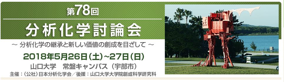 5月26日-27日、山口大学常盤キャンパス(宇部市)において開催された、第78回分析化学討論会に本研究室より、研究成果発表(一般講演)を行いました。 タイトルは、下記のとおりです。 ・佐藤常寿、高貝慶隆「アルギン酸ゲルを … 続きを読む